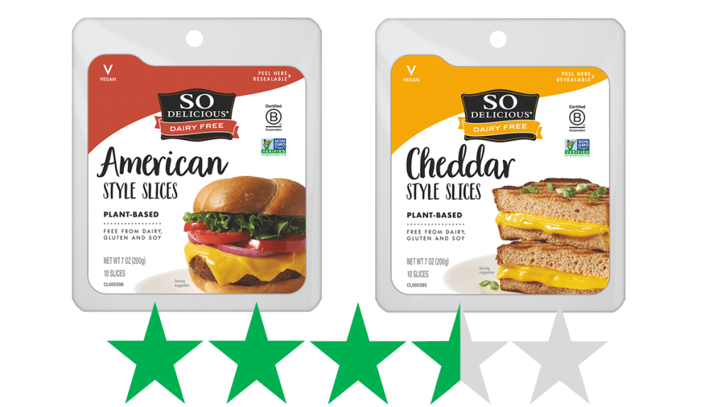 Here’s a summary of how I feel about the social and environmental impact of So Delicious vegan cheese slices, which I’m scoring 3.5 Green Stars: